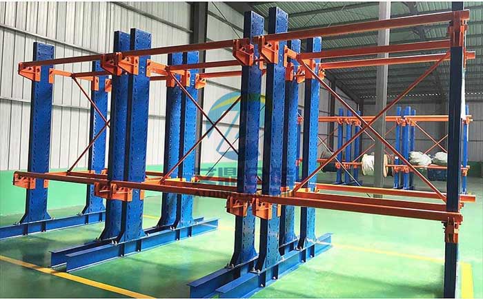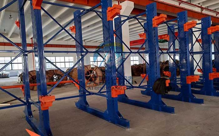 貨架之間連接:電纜貨架立柱之間採(cǎi)用方管連接闆組成拉杆,拉杆和立柱之間採(cǎi)用高強度螺栓固定連接,拉杆之間採(cǎi)用斜拉收緊、使電纜貨架更加穩定牢固。這些用於(yú)放置電纜的貨架看上去與懸臂貨架有些類似,但又不完全與懸臂式貨架相同,你會看到,它們的“懸臂”更短,其餘地方也根據需要進行有優化,讓電纜滾輪可以有空間放置。有人也稱它們電纜懸臂貨架。